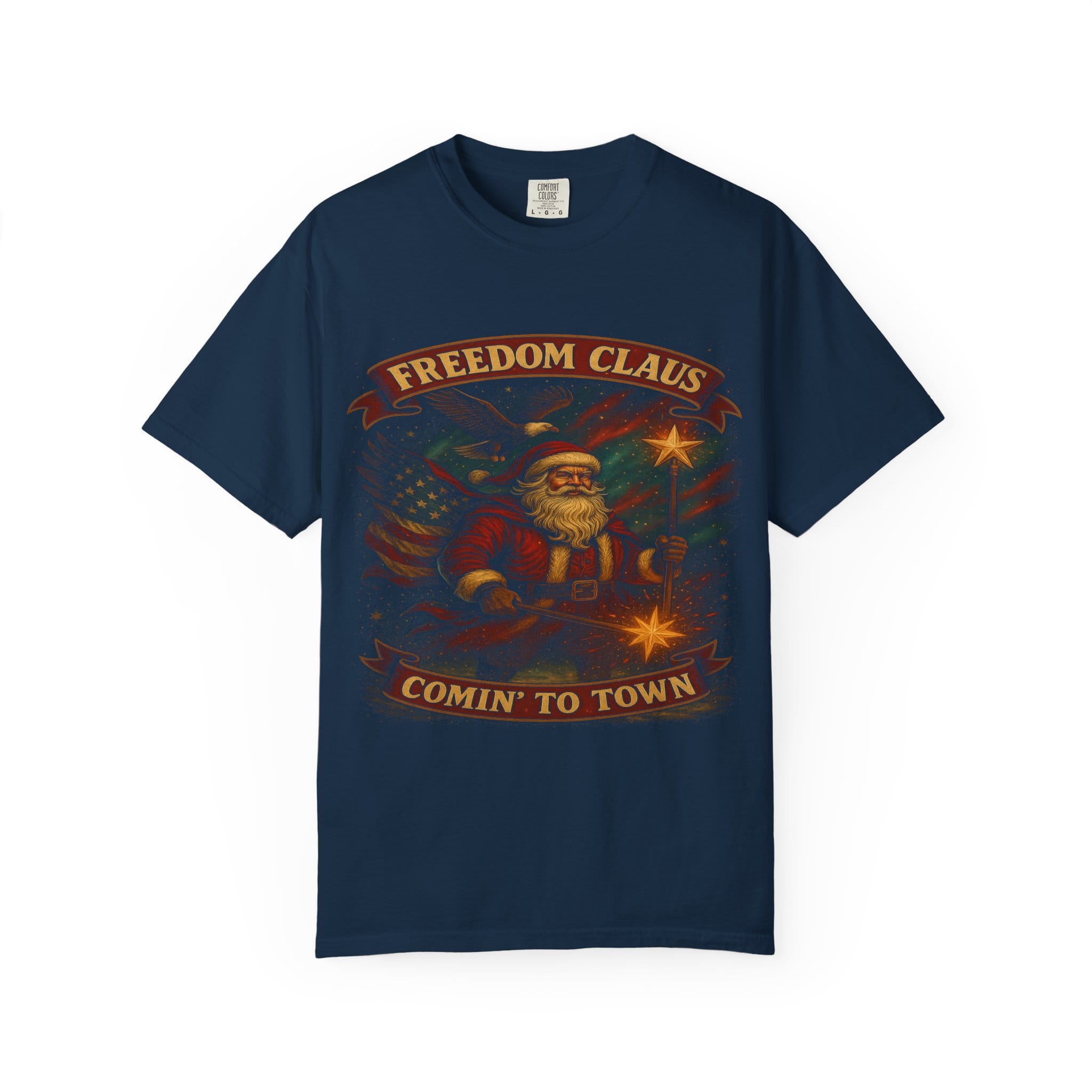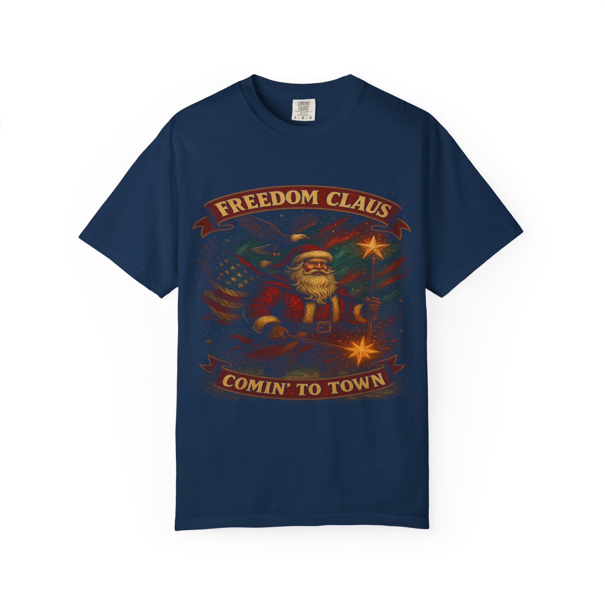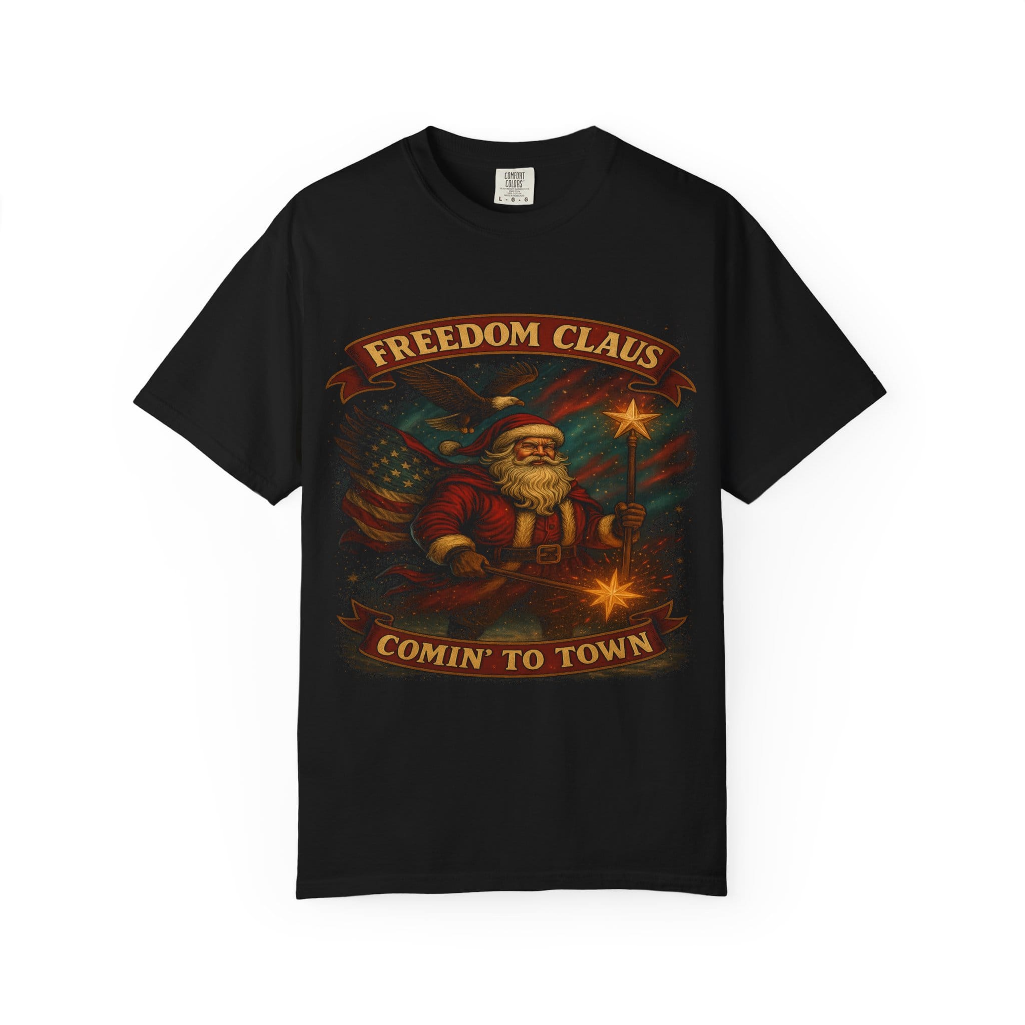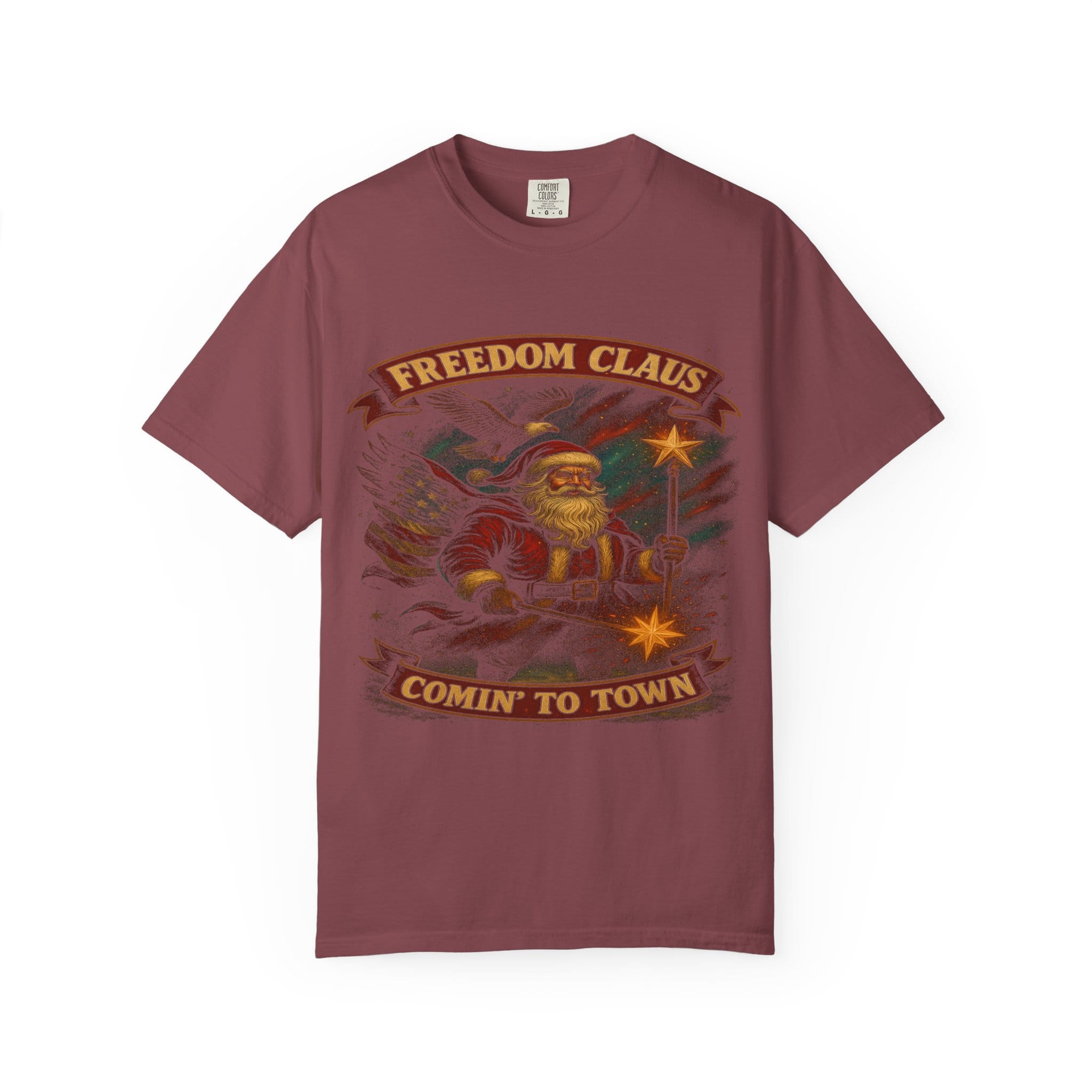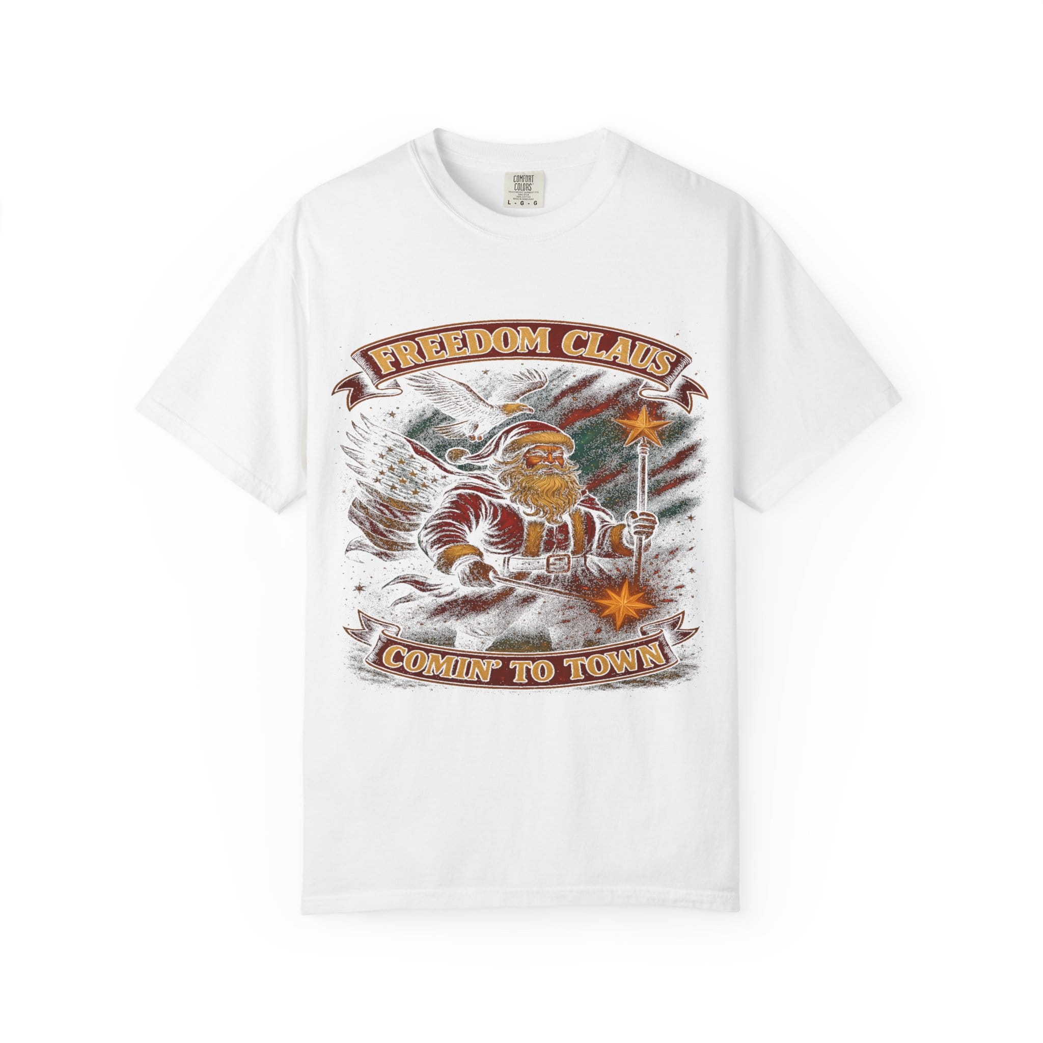 Be the first to review “Freedom Claus ‘Comin’ to Town’ Vintage Santa T-Shirt”