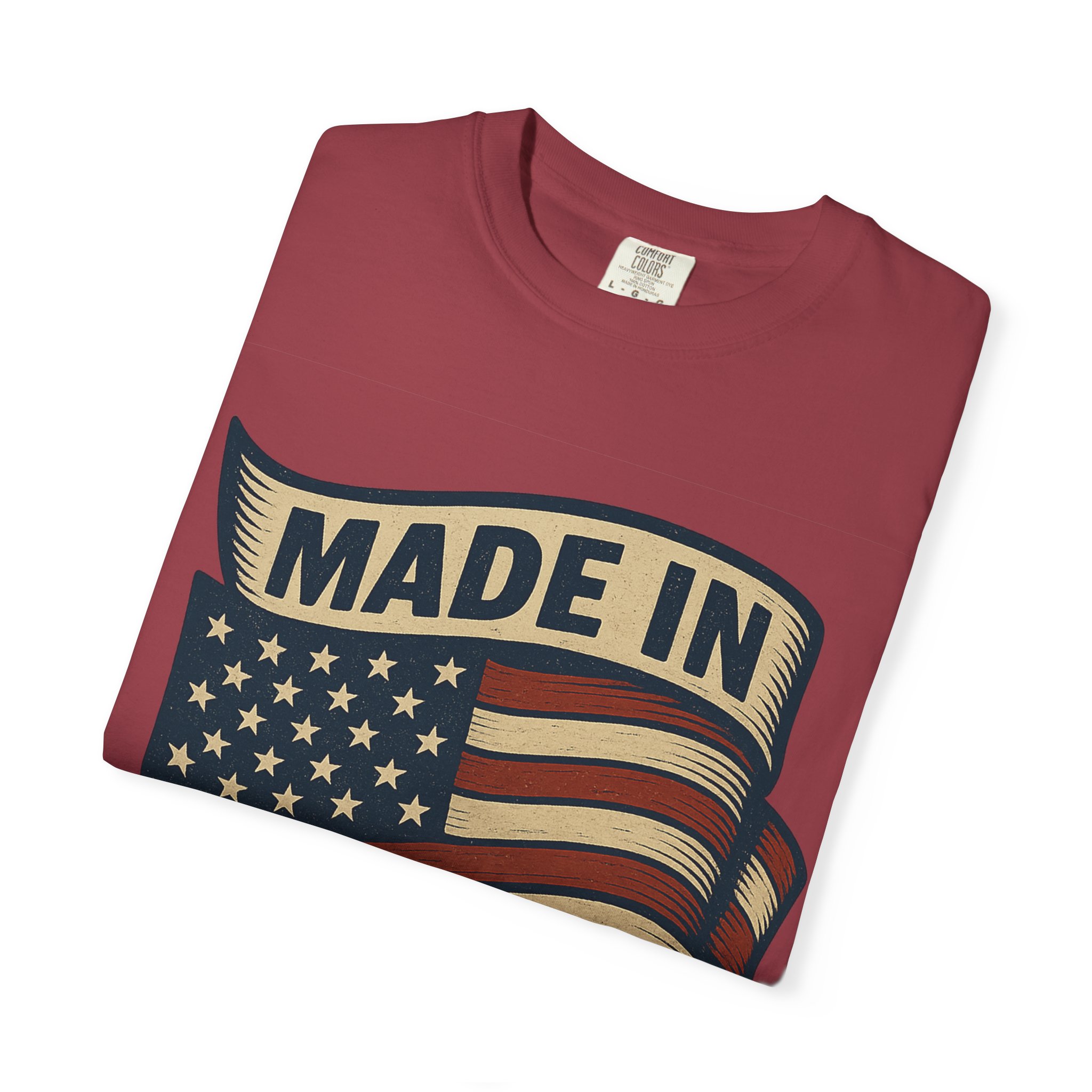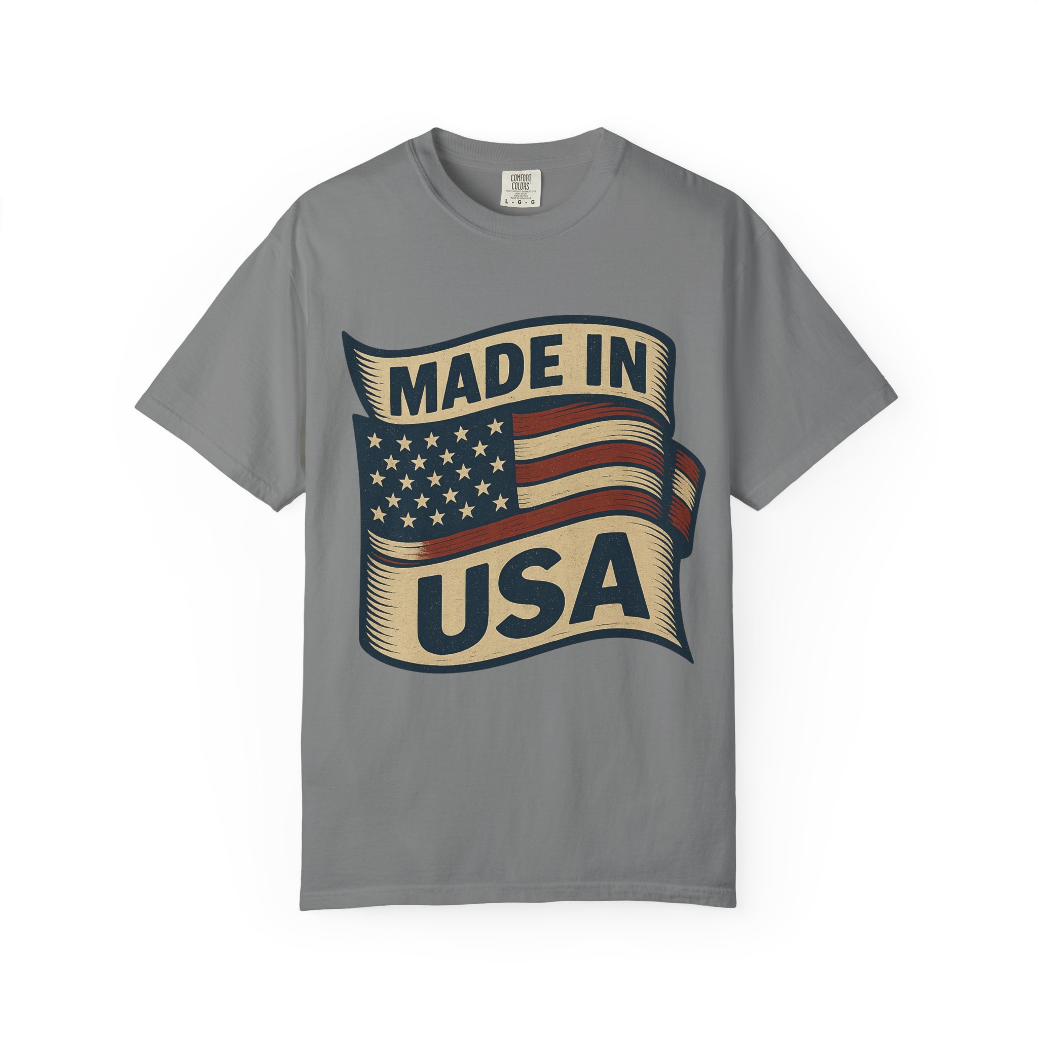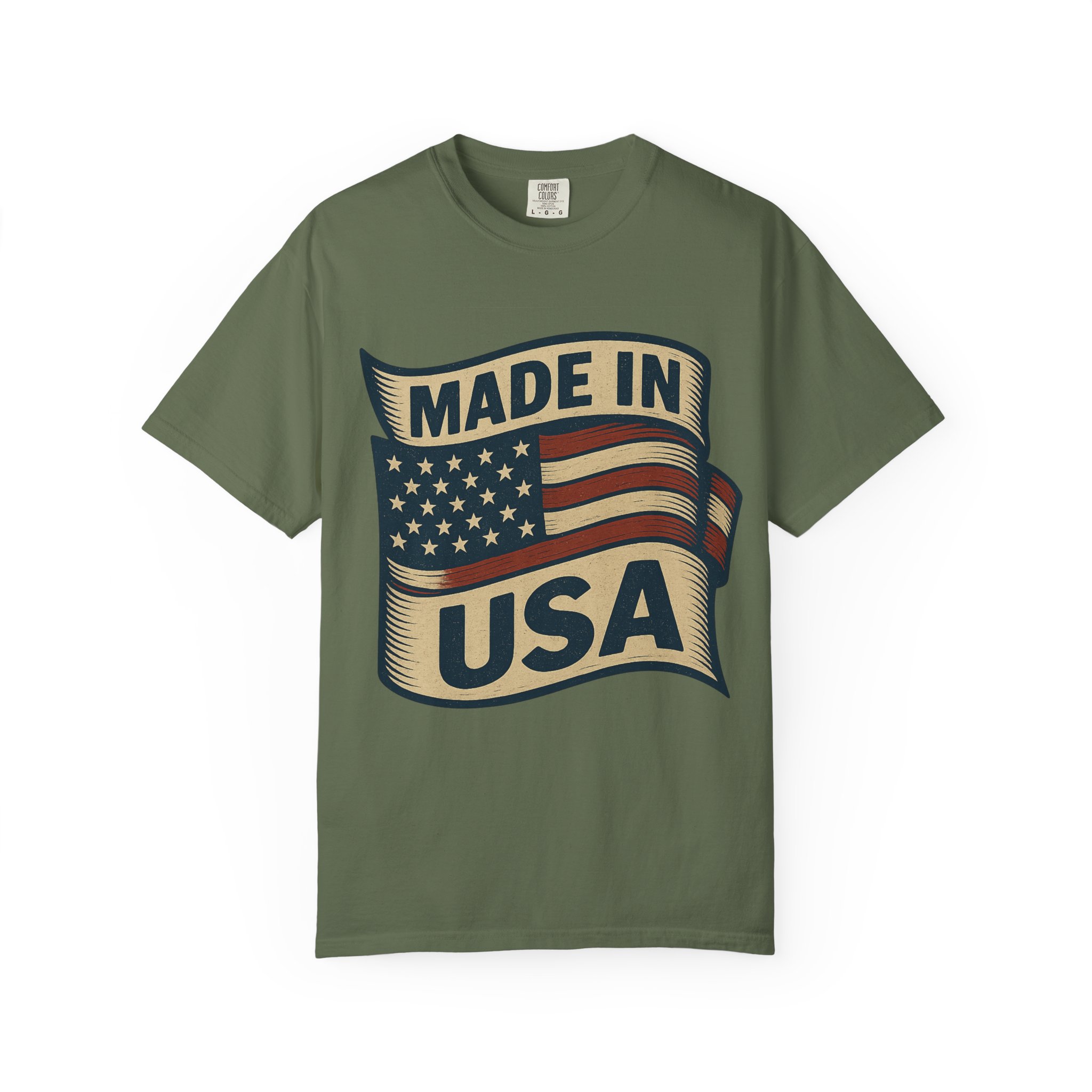 This garment-dyed tee carries a vintage patriotic vibe — a softly faded flag banner and bold “Made in USA” lettering that feels lived-in from the first wear. The medium-weight cotton drapes with a relaxed shape, breaking in over time to become an everyday staple for anyone who values honest style and durable comfort. Wear it to neighborhood cookouts, small-town parades, or when you want a quiet, confident nod to American-made goods. The soft dye and tubular knit give the shirt a nostalgic, wearable finish that fits seamlessly into casual wardrobes.