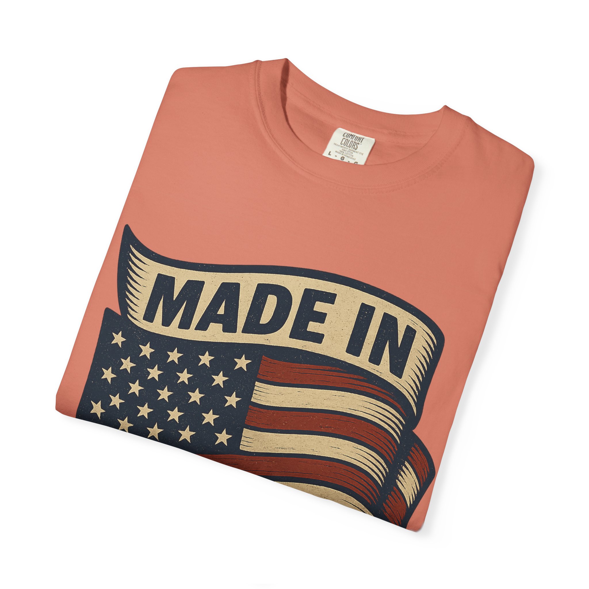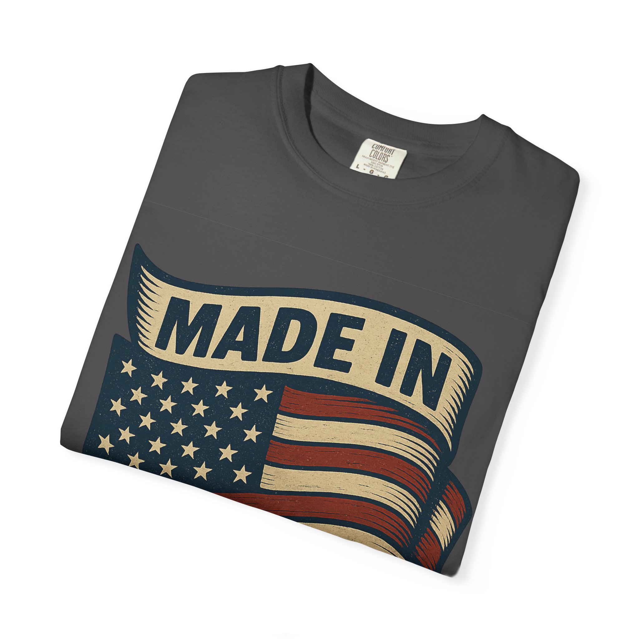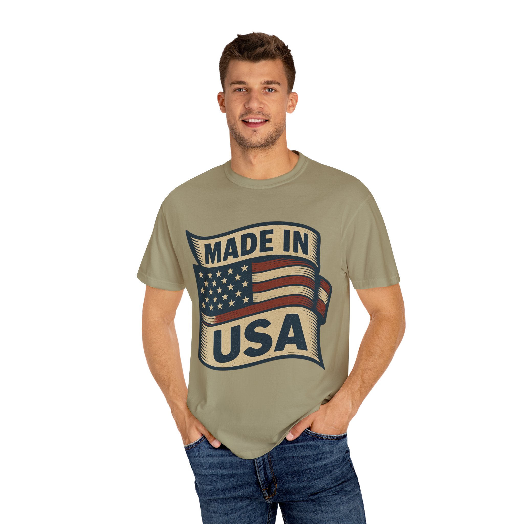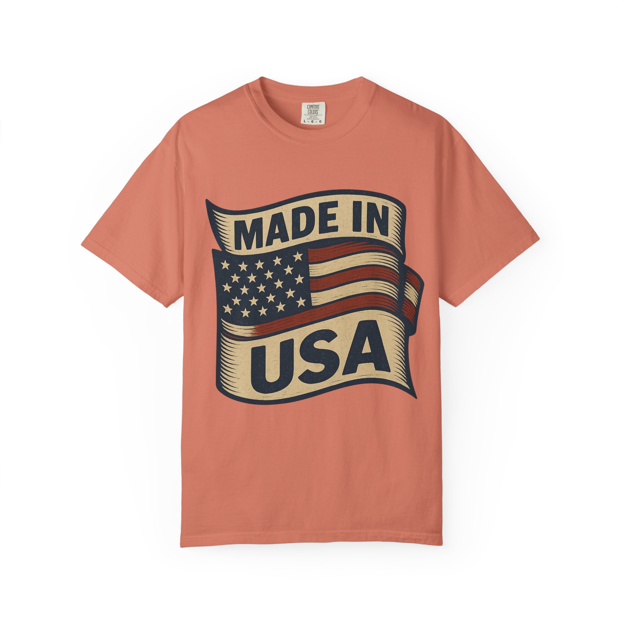 This garment-dyed tee carries a vintage patriotic vibe — a softly faded flag banner and bold “Made in USA” lettering that feels lived-in from the first wear. The medium-weight cotton drapes with a relaxed shape, breaking in over time to become an everyday staple for anyone who values honest style and durable comfort. Wear it to neighborhood cookouts, small-town parades, or when you want a quiet, confident nod to American-made goods. The soft dye and tubular knit give the shirt a nostalgic, wearable finish that fits seamlessly into casual wardrobes.