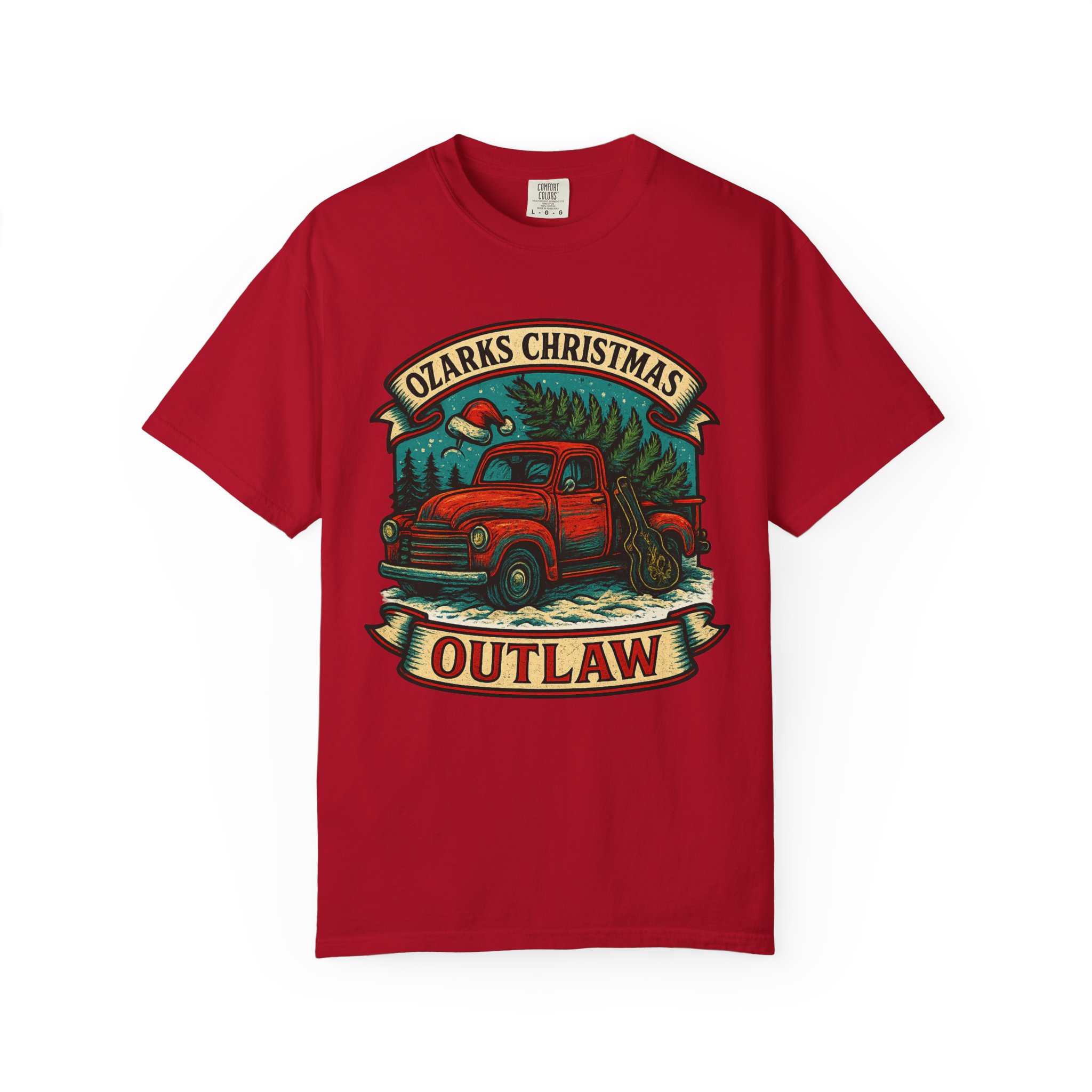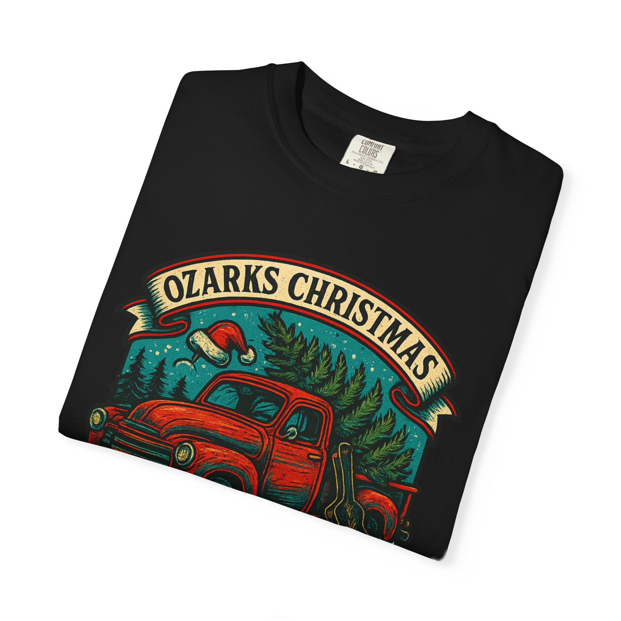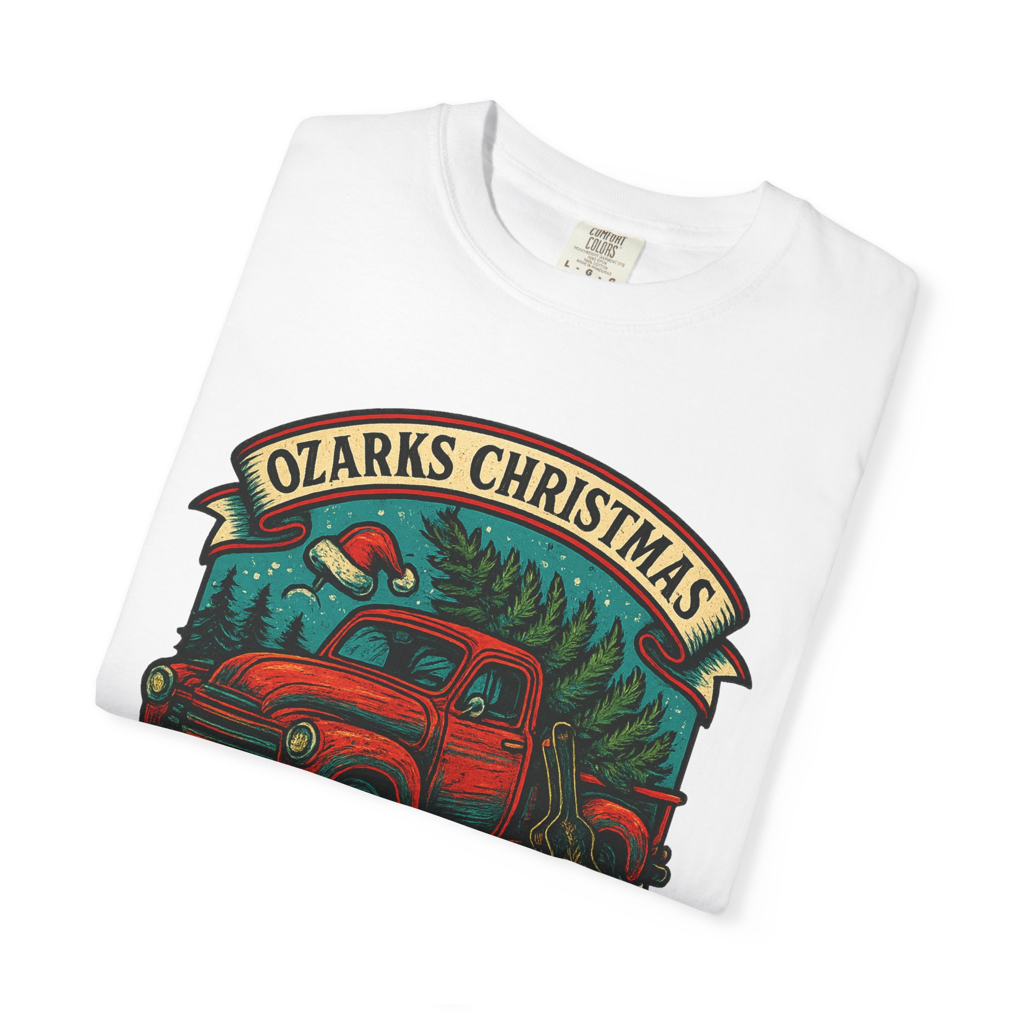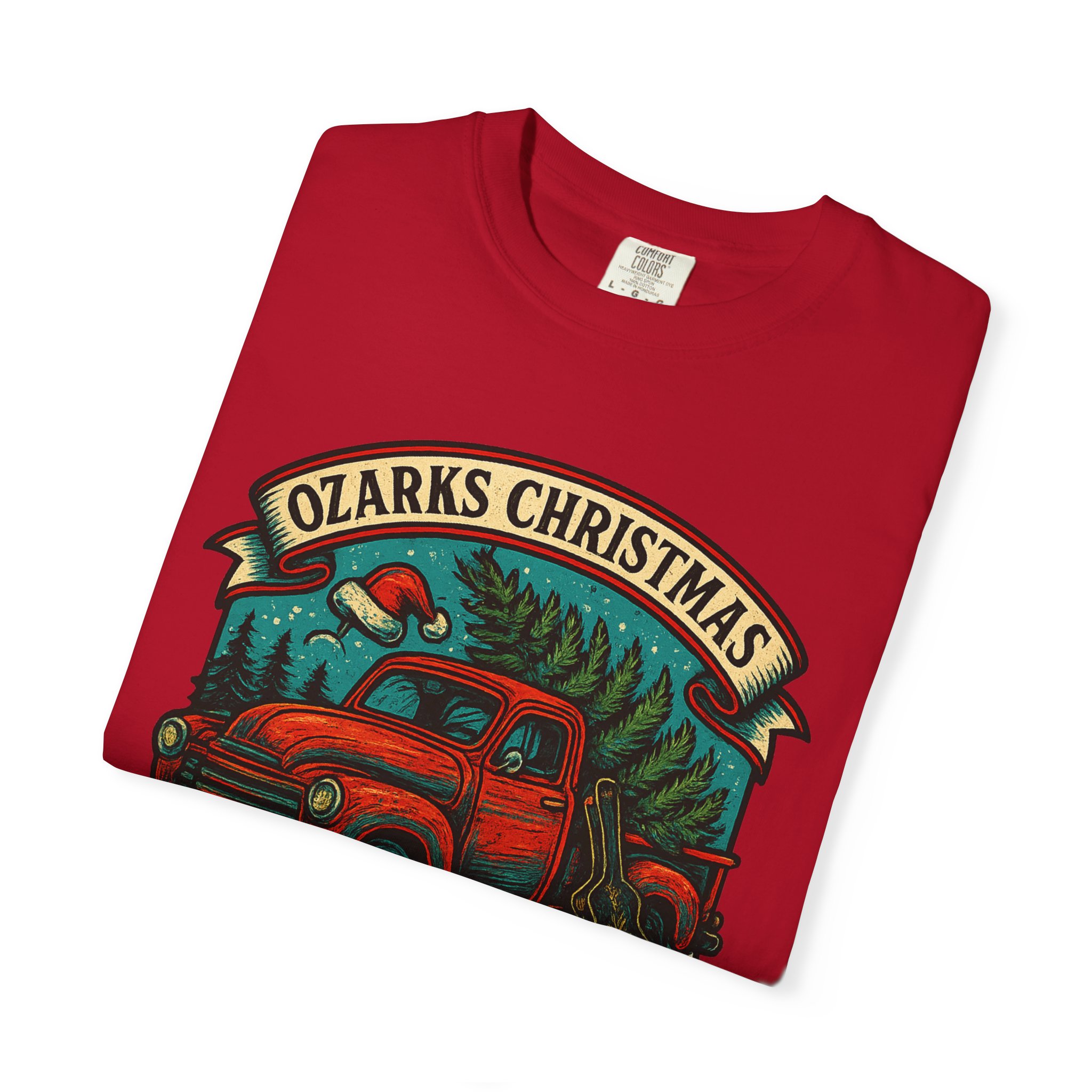 Rustic, road-worn charm meets holiday mischief. This garment-dyed tee carries a faded, lived-in feel that makes the vintage red pickup and forest scene look like a memory reclaimed from a long country drive. Wear it layered over a flannel on cold mornings or solo when the air finally warms—its relaxed fit and midweight cotton sit comfortably whether you’re trimming a tree, swapping tall tales by a fire, or cruising backroads at dusk. The print reads like a patch sewn onto an old jacket: bold colors with softened edges that age gracefully alongside you. It’s made for people who prefer their celebrations with a little grit, a lot of pine, and stories that get taller each year.
